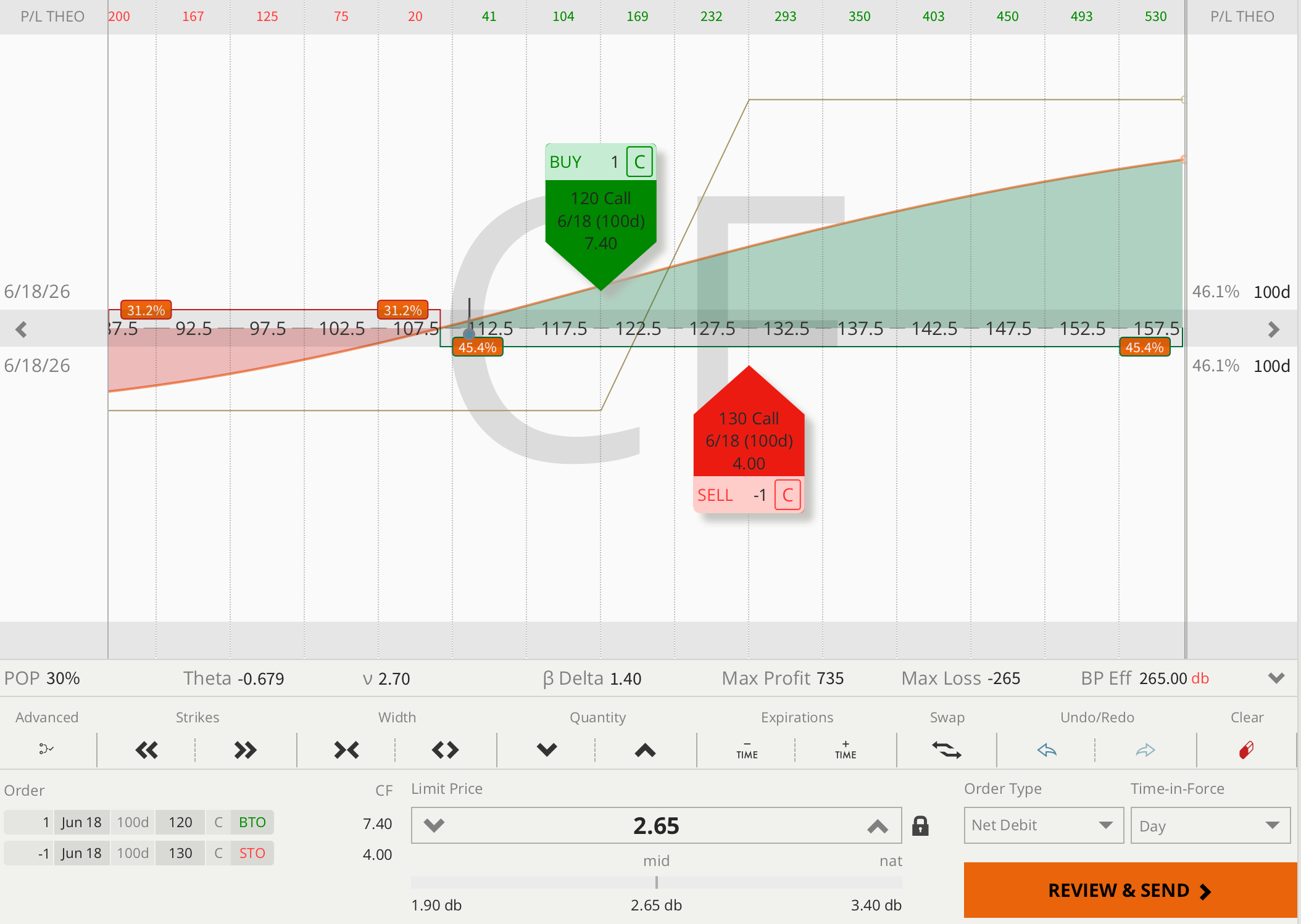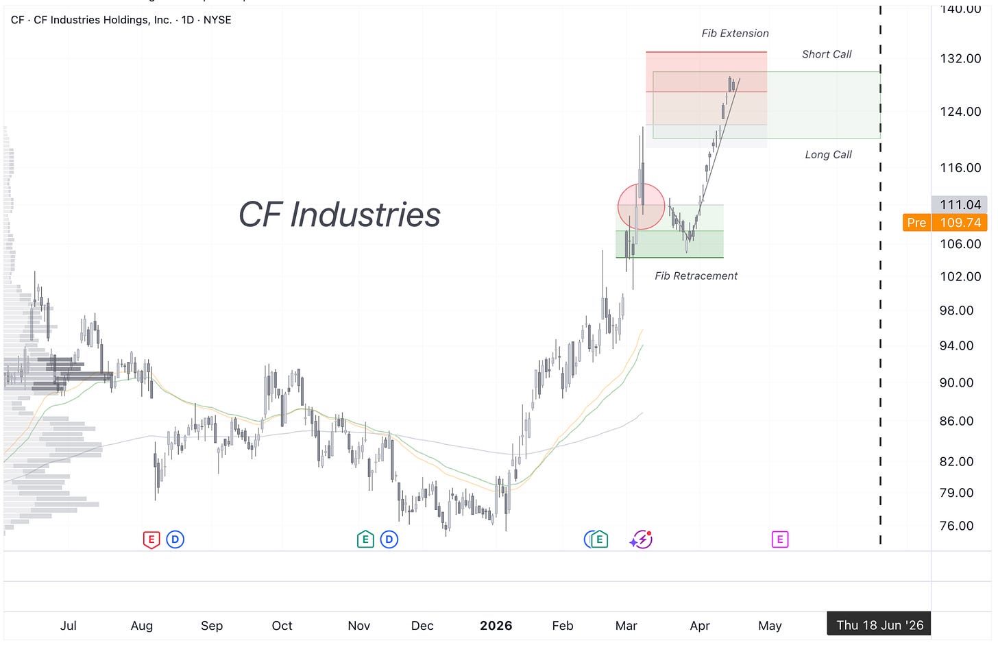Their margins widen on both sides, stable domestic costs, skyrocketing international product prices. A bull call spread on CF captures this structural cost divergence with defined risk. Unlike crude, which a tweet can crash in minutes, disrupted fertilizer supply chains take months to normalize regardless of any ceasefire timeline.