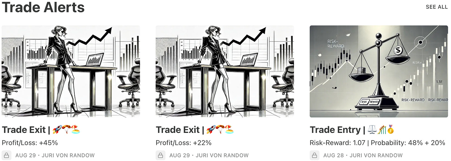 All our recent trades and the reasoning behind them can be found in the Trade Alerts section. Think of it as a behind-the-scenes look into our process, so you can decide if it’s worth adopting (or adapting) in your own strategy.